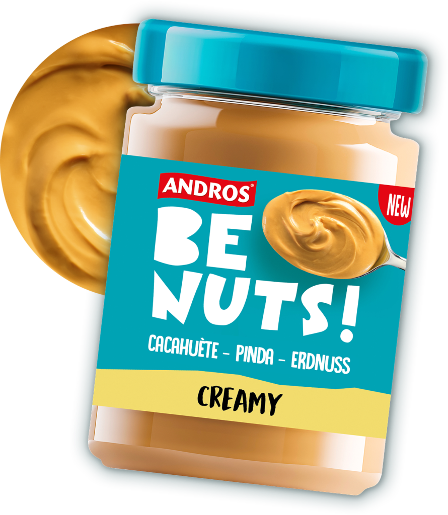 Andros Be Nuts! La pâte à tartiner aux cacahuètes qui a tout pour plaire ! Elle est tellement délicieuse que personne ne peut y résister !